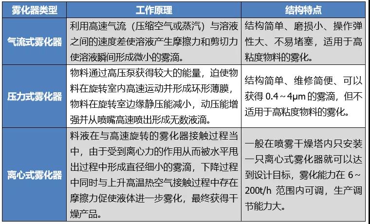 根據(jù)霧化器的結(jié)構(gòu),可分為離心噴霧干燥器,壓力噴霧干燥器和氣流噴霧干燥器。
